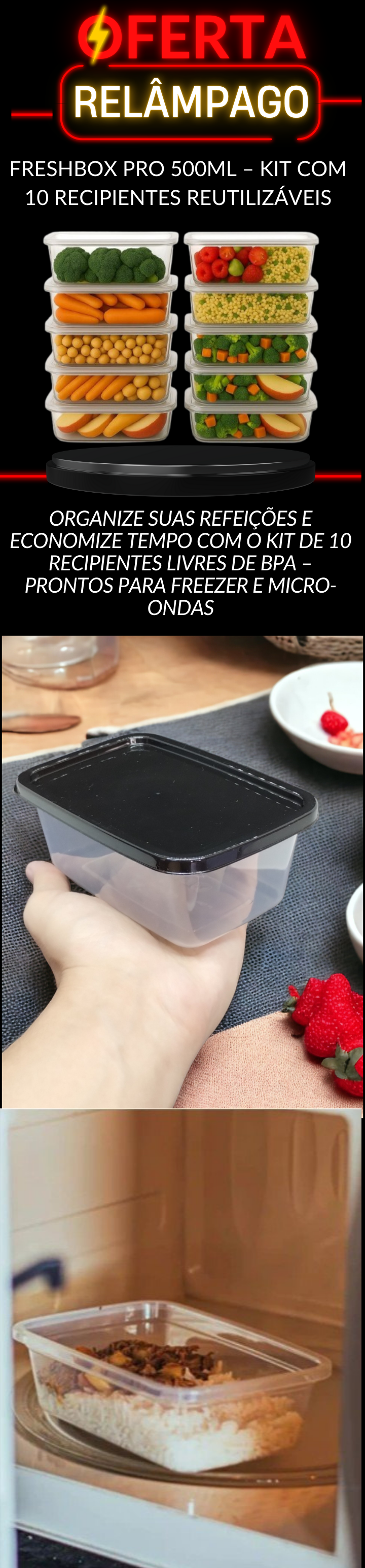 FreshBox Pro 500ml – Kit com 10 Recipientes Reutilizáveis