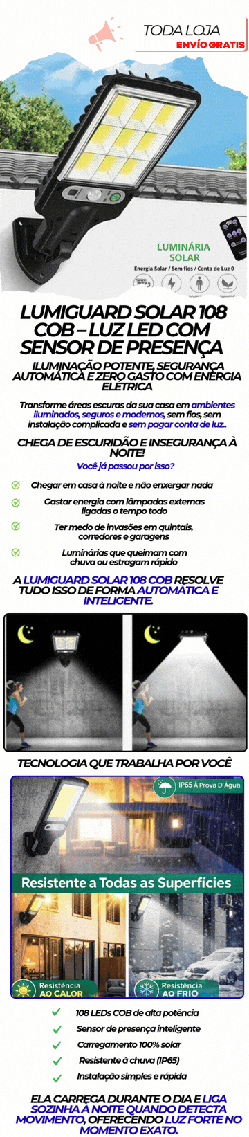 Luminária Solar LumiGuard 108 COB